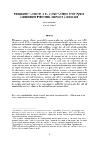 Makris_Deutscher_Makris_Sustainability Concerns in EU Merger Control_From Output-Maximising to Polycentric Innovation Competition_JAE_clean94.pdf - Accepted Version Download (616kB) | Preview |