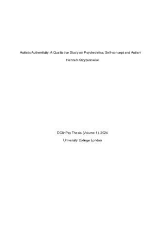 | Title: | Autistic Authenticity: A Qualitative Study on Psychedelics, Self-concept and Autism |
