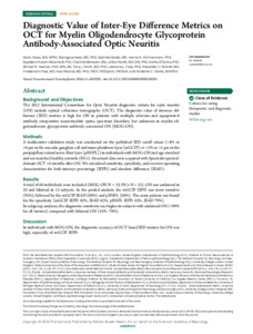Diagnostic Value of Inter-Eye Difference Metrics on OCT for Myelin Oligodendrocyte Glycoprotein Antibody-Associated Optic Ne.pdf - Accepted Version Download (555kB) | Preview |
