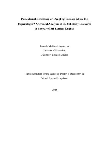 Postcolonial Resistance or Dangling Carrots before the Unprivileged? A Critical Analysis of the Scholarly Discourse in Favour of Sri Lankan English.