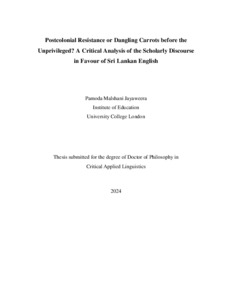 Title: | Postcolonial Resistance or Dangling Carrots before the Unprivileged? A Critical Analysis of the Scholarly Discourse in Favour of Sri Lankan English |