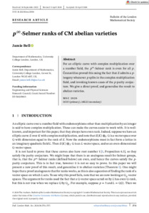 Bell_Bulletin of London Math Soc - 2024 - Bell - p p infty ‐Selmer ranks of CM abelian varieties.pdf Download (115kB) | Preview |