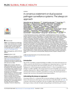 Title: | A consensus statement on dual purpose pathogen surveillance systems: the Always On approach |