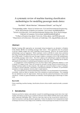 | Title: | A systematic review of machine learning classification methodologies for modelling passenger mode choice |