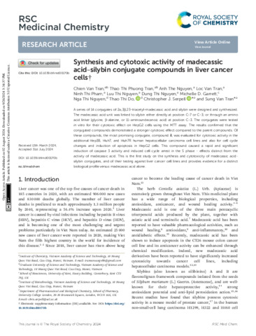 Synthesis and cytotoxic activity of madecassic acid–silybin conjugate compounds in liver cancer cells.