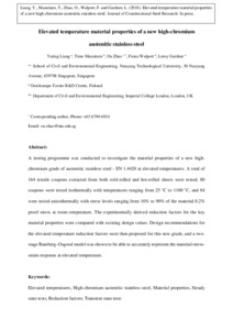 Title: | Elevated temperature material properties of a new high-chromium austenitic stainless steel |