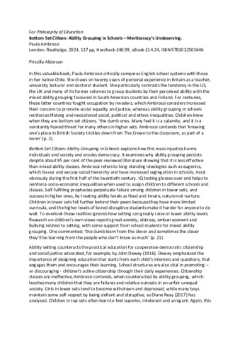 Title: | Bottom Set Citizen: Ability Grouping in Schools—Meritocracy’s Undeserving |