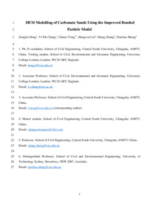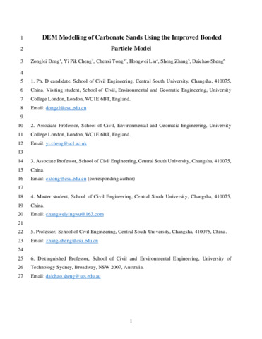 Title: | DEM modelling of particle crushing of single carbonate sand using the improved bonded particle model |