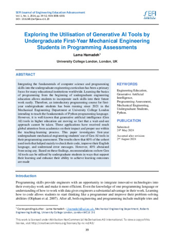 | Title: | Exploring the Utilisation of Generative AI Tools by Undergraduate First-Year Mechanical Engineering Students in Programming Assessments |