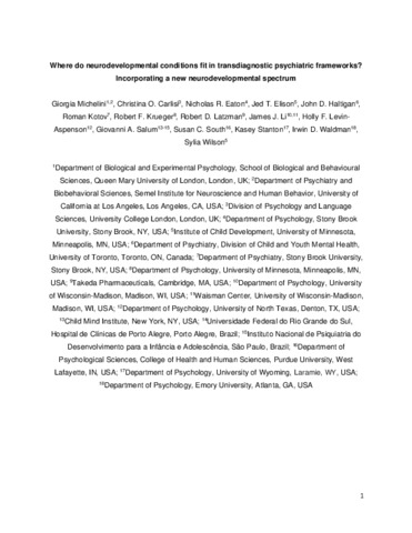 | Title: | Where do neurodevelopmental conditions fit in transdiagnostic psychiatric frameworks? Incorporating a new neurodevelopmental spectrum |