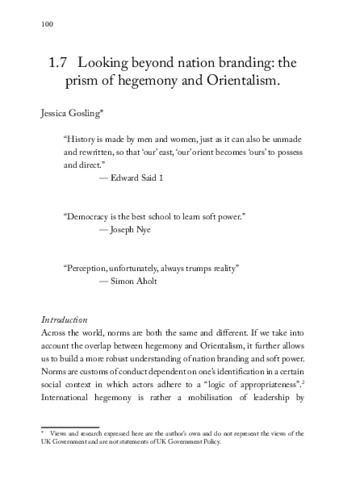 | Title: | Looking beyond nation branding: the prism of hegemony and Orientalism |