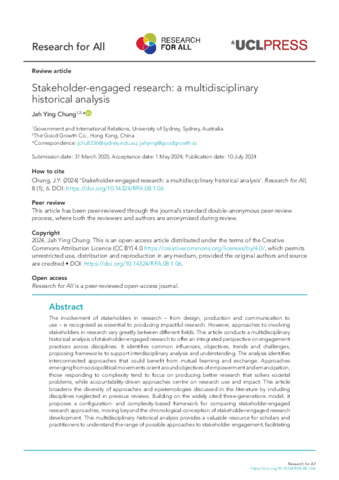 | Title: | Stakeholder-engaged research: a multidisciplinary historical analysis |