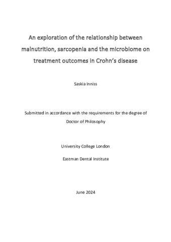 Title: | An exploration of the relationship between malnutrition, sarcopenia and the microbiome on treatment outcomes in Crohn’s disease |