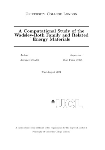 UCL classification: | UCL UCL > Provost and Vice Provost Offices > UCL BEAMS UCL > Provost and Vice Provost Offices > UCL BEAMS > Faculty of Maths and Physical Sciences UCL > Provost and Vice Provost Offices > UCL BEAMS > Faculty of Maths and Physical Sciences > Dept of Chemistry |