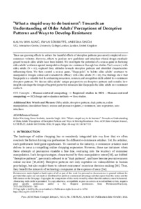 Title: | “What a stupid way to do business”: Towards an Understanding of Older Adults’ Perceptions of Deceptive Patterns and Ways to Develop Resistance |