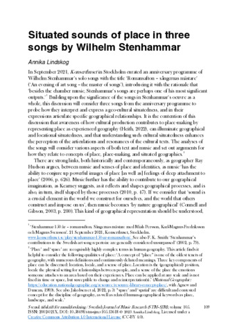Title: | Situated sounds of place in the songs of Wilhelm Stenhammar |