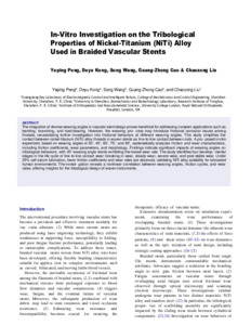 In-Vitro Investigation on the Tribological Properties of Nickel-Titanium (NiTi) Alloy Used in Braided Vascular Stents.