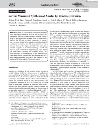Solvent Minimized Synthesis of Amides by Reactive Extrusion.