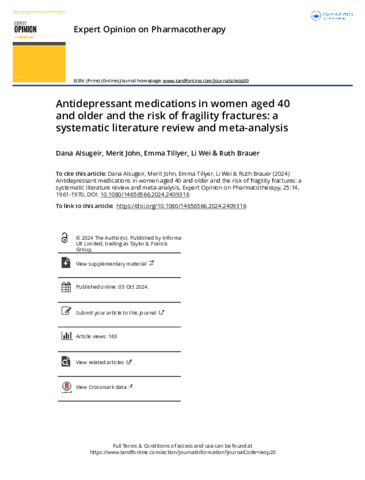 Title: | Antidepressant medications in women aged 40 and older and the risk of fragility fractures: a systematic literature review and meta-analysis |