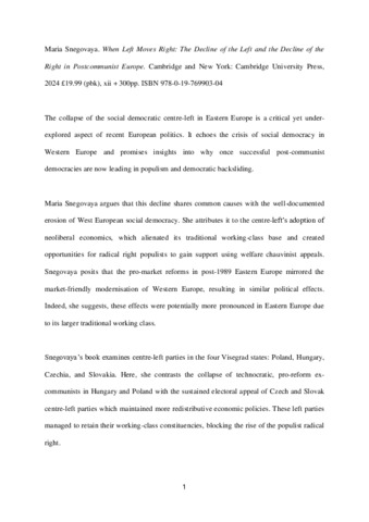 Book review: When left moves right: The decline of the left and the decline of the right in postcommunist Europe.