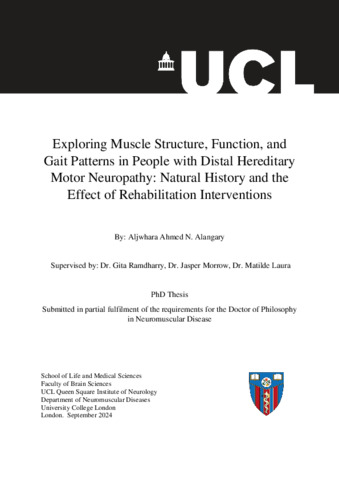 | Title: | Exploring Muscle Structure, Function, and Gait Patterns in People with Distal Hereditary Motor Neuropathy: Natural History and the Effect of Rehabilitation Interventions |