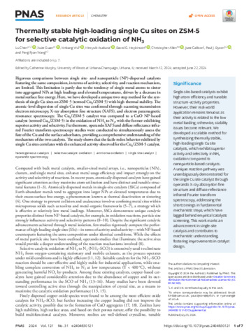 | Title: | Thermally stable high-loading single Cu sites on ZSM-5 for selective catalytic oxidation of NH3 |