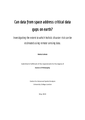 Title: | Can data from space address critical data gaps on earth? Investigating the extent to which holistic disaster risk can be estimated using remote sensing data |