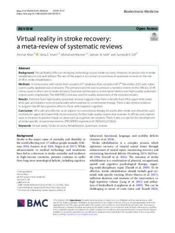 Title: | Virtual reality in stroke recovery: a meta-review of systematic reviews |
