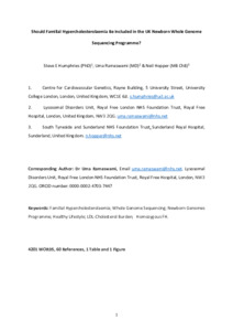 | Title: | Should Familial Hypercholesterolaemia Be Included in the UK Newborn Whole Genome Sequencing Programme? |