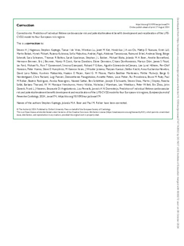 Title: | Correction to: Prediction of individual lifetime cardiovascular risk and potential treatment benefit: development and recalibration of the LIFE-CVD2 model to four European risk regions |