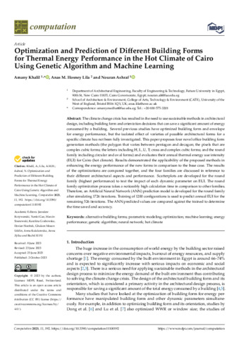 Title: | Optimization and Prediction of Different Building Forms for Thermal Energy Performance in the Hot Climate of Cairo Using Genetic Algorithm and Machine Learning |