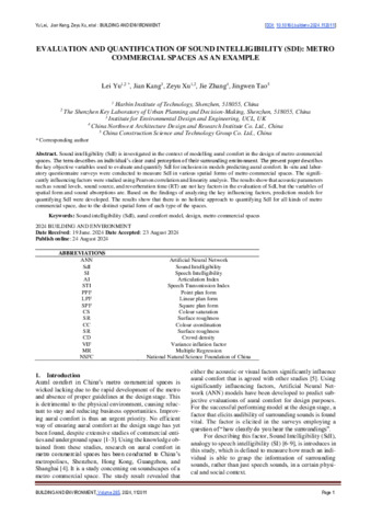 | Title: | Evaluation and quantification of sound intelligibility (SdI): Metro commercial spaces as an example |