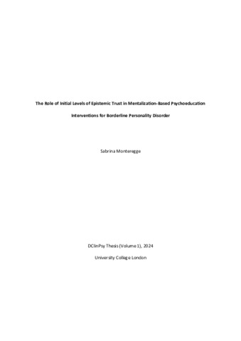 Title: | The Role of Initial Levels of Epistemic Trust in Mentalization-Based Psychoeducation Interventions for Borderline Personality Disorder |