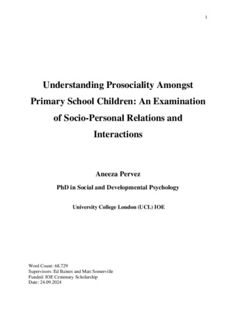 | Title: | Understanding Prosociality Amongst Primary School Children: An Examination of Socio-Personal Relations and Interactions |
