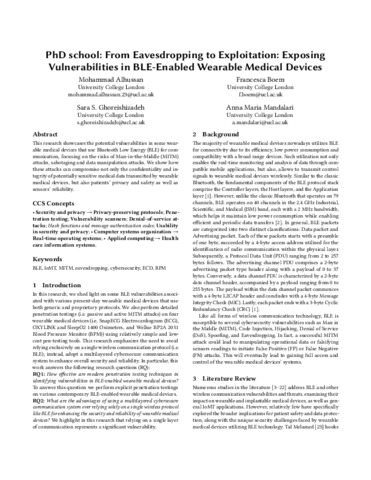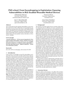 Title: | PhD school: From Eavesdropping to Exploitation: Exposing Vulnerabilities in BLE-Enabled Wearable Medical Devices |