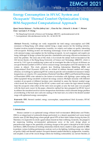 Title: | Energy Consumption in HVAC System and Occupants' Thermal Comfort Optimization Using BIM-Supported Computational Approach |