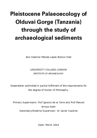 | Title: | Pleistocene palaeoecology of Olduvai Gorge (Tanzania) through the study of archaeological sediments |
