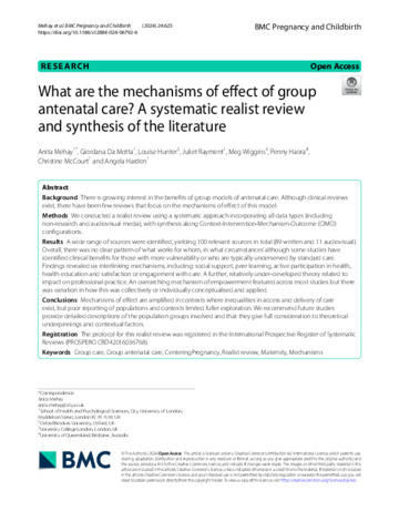 | Title: | What are the mechanisms of effect of group antenatal care? A systematic realist review and synthesis of the literature |