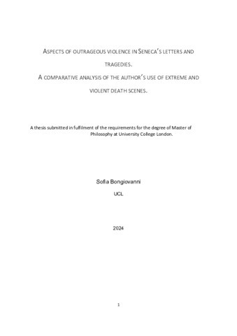 | Title: | Aspects of outrageous violence in Seneca’s letters and tragedies. A comparative analysis of the author’s use of extreme and violent death scenes |