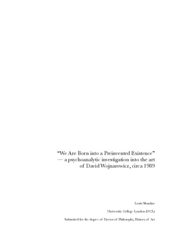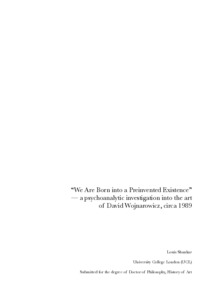 | Title: | “We Are Born into a Preinvented Existence” — a psychoanalytic investigation into the art of David Wojnarowicz, circa 1989 |