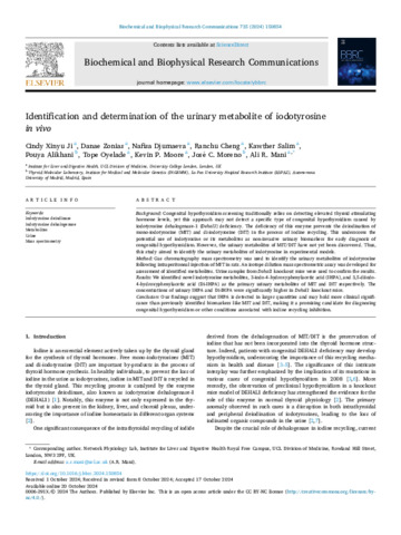 | Title: | Identification and determination of the urinary metabolite of iodotyrosine in vivo |