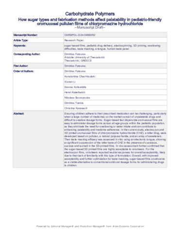 Title: | How sugar types and fabrication methods affect palatability in paediatric-friendly oromucosal pullulan films of chlorpromazine hydrochloride |