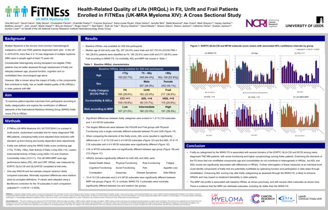 Title: | Health-Related Quality of Life (HRQoL) in Fit, Unfit and Frail Patients Enrolled in Fitness (UK-MRA Myeloma XIV): A Cross Sectional Study |