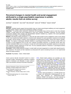 Perceived changes in mental health and social engagement attributed to a single psychedelic experience in autistic adults: results from an online survey.