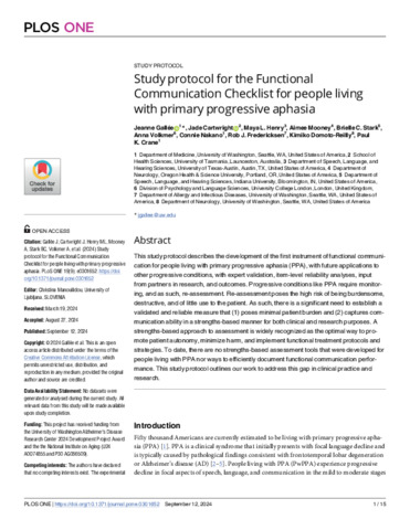 | Title: | Study protocol for the Functional Communication Checklist for people living with primary progressive aphasia |