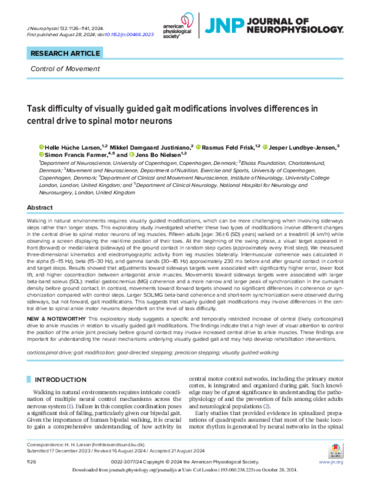 | Title: | Task difficulty of visually guided gait modifications involves differences in central drive to spinal motor neurons |