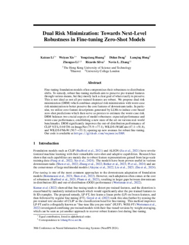 Title: | Dual Risk Minimization: Towards Next-Level Robustness in Fine-tuning Zero-Shot Models |