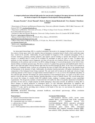 Title: | A compact pulsed near-infrared light probe for non-invasive imaging of the spaces between the skull and the brain to improve the diagnosis of brain injuries during spaceflight |