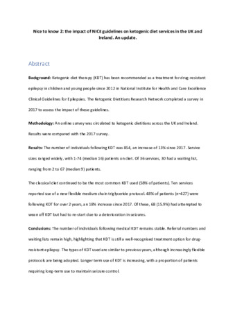 Title: | Nice to know 2: The impact of NICE guidelines on ketogenic diet services in the UK and Ireland – An update |