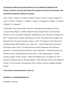 | Title: | Validation of metastasis-free survival as a surrogate endpoint for overall survival in localized prostate cancer in the era of docetaxel for castration-resistant prostate cancer |